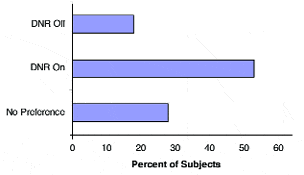 FIGURE 4. The primary results of the Powers et al14 study that involved 21 adults from two independent research sites during a 10-day field trial that culminated in them rating their favorite overall program. Note that 6 (28%) of the 21 subjects did not have a DNR-off versus DNR-on preference. Of the remaining 15 subjects, however, 11 (73%) preferred the DNR-on program. Only 4 of the 21 subjects favored the DNR-off setting.