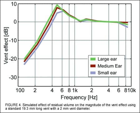 The effect of the residual volume and the middle ear compliance is more difficult to estimate and control because its magnitude is difficult to measure using clinical equipment. This means that, unless the wearer has the average residual volume and/or middle ear compliance (eg, the volume of their ear canals are the same as the normative data), it will be difficult to accurately predict the vent effect simply from knowing the physical dimensions of the vents used on the hearing aid.