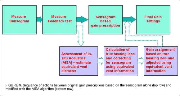 The AISA algorithm automatically estimates the equivalent vent effect of the wearer’s hearing aid/vent system. Furthermore, it appropriately compensates for the vent effect to ensure that the desired real-ear gain and optimal sound quality are realized. Figure 9 summarizes the steps discussed in this paper.