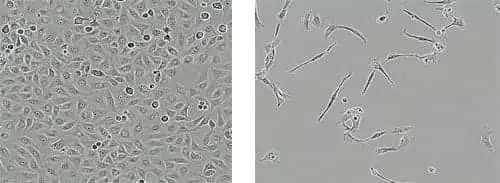 ?Left: Vestibular schwannoma cells without treatment. Right: Vestibular schwannoma cells treated with mifepristone.
