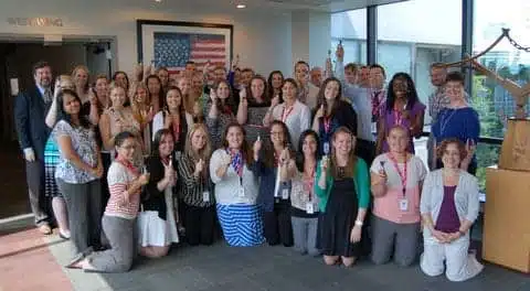The Salus University Osborne College of Audiology Class of 2017 are shown here with the College’s faculty after receiving their otoscopes. In a special ceremony held each year during Orientation Week, new Doctor of Audiology (AuD) students are welcomed by the dean and faculty and receive this essential instrument of their profession. At the end of the ceremony, students and faculty recite the Audiologist’s Oath, a prelude to the Oath to Professionalism they will recite at their White Coat ceremony in September and again at commencement.
