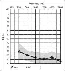 Participants. In total, 12 children from three different hearing centers in the United States participated in this study. The average age of the students was 11.5 years. All children had a severe or profound sensorineural hearing impairment with no conductive overlay (Figure 1). They attended regular schools, and used speech as their primary communication mode. No other disability other than the hearing loss was present.