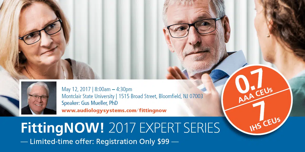 In addition to FittingNOW!, Otometrics/Audiology Systems, now a division of Natus Medical, offers a series of training opportunities designed to help clinicians and hearing care professionals maximize the use of hearing and balance instrumentation. According to Audiology Education Manager Kathleen Hill, AuD, “Our courses encompass clinical audiologists, hearing instrument specialists, research professionals, academics and industry professionals. We work in close collaboration with industry experts to create learning opportunities that will help our clients and clinicians maximize the use of hearing and balance instrumentation. We are very excited to be working with Dr. Gus Mueller to bring you the Expert Series 2017.”