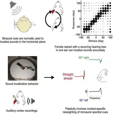 The results show that animals raised with temporary hearing loss were still able to localize sounds accurately while wearing an earplug in one ear. They achieved this by becoming more dependent on the unchanged spectral cues from the outer part of the unaffected ear. When the plug was removed and hearing returned to normal, the animals were just as good at localizing sounds as those who had never experienced hearing loss.