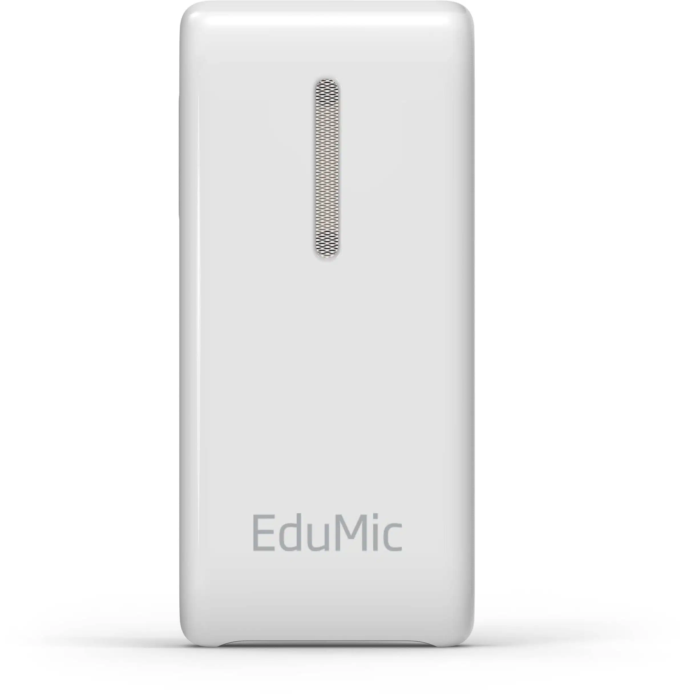 According to Oticon, EduMic enables access to a variety of audio sources and teachers can plug EduMic into a computer, smartboard, or tablet using the 3.5 audio microphone jack connection. The audio jack also allows integration with existing sound field systems, accessing multiple audio sources and microphones simultaneously.