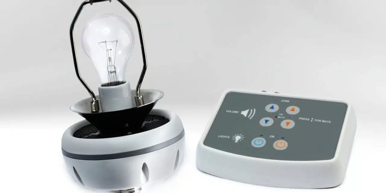 The Sound of Light, marketed by South Coastal Merchandisers Inc, Fullerton, Calif, is a wireless speaker system powered from the socket of a floor or table lamp. According to the company, the user simply unscrews the existing light bulb and replaces it with the Sound of Light speaker system. The light bulb can then be screwed into the new socket, an audio source (eg, Apple products, TV, stereo, etc) is chosen, and the devices are paired. The result is said to be clear sound where you need it, with no wires required to run, headphones to wear, or speakers to place.