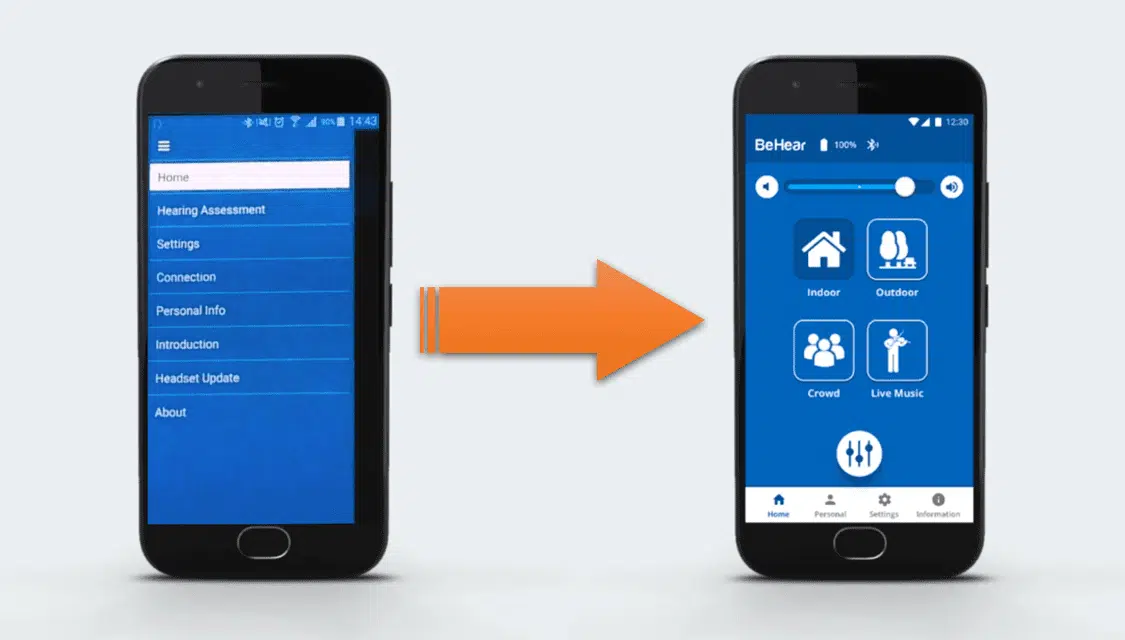 Existing Wear & Hear customers will receive a notification in their existing W&H BeHear app that a new version is waiting for them (with a link to a video explaining how to use the new interface, as seen above).