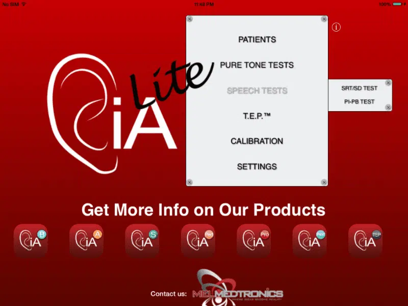 A free iA-Lite version is available at Apple®‘s App Store to allow hearing healthcare providers an opportunity to “test drive” and evaluate all of the many features prior to making a purchase. There is a screening version designed for public school hearing screenings, a picture pointing test for pediatric patients, and a full feature model that also generates a self-populating clinical report. All of these iA Audiometers have a patient database and the results can be saved, printed, and emailed right from the iPad.