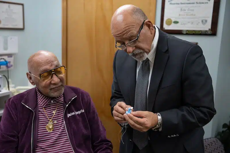 Featured image: Duke Fakir (left) of the Four Tops with Felix Cruz (right), hearing instrument specialist and owner of Cruz Hearing Aid Service in Michigan. Photo: Widex