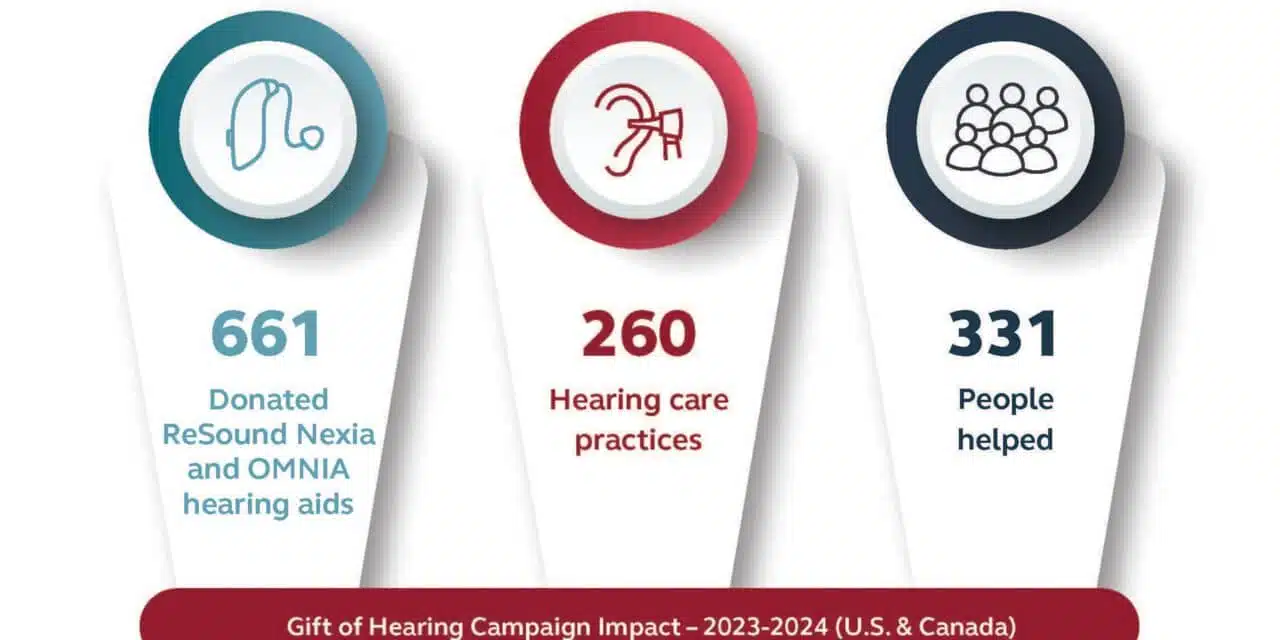 With the help of 260 hearing care practices throughout the United States and Canada, ReSound today announced that 661 hearing aids were donated to 331 people as part of the annual ReSound Gift of Hearing campaign that ran December 2023 through April 2024. This was the first year that Canada participated in the campaign.