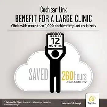 Other clinicians report that with Cochlear Link, patients benefit from faster turnaround time on replacement devices. Also, clinics benefit from less administrative time, which allows them to be more efficient in providing optimal service to cochlear implant patients.