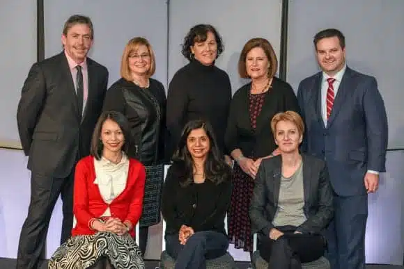 Researchers and clinicians joined Oticon staff at the 2015 Oticon Pediatrics Conference. L to R (standing): Don Schum, PhD; Maureen Doty Tomasula, AuD, FAAA; Janet DesGeorges; Laura Shiplett, AuD, FAAA; Ryan McCreery, PhD; L to R (seated): Carisa Reyes, AuD; Anu Sharma, PhD, and Kamilla Angelo, PhD.