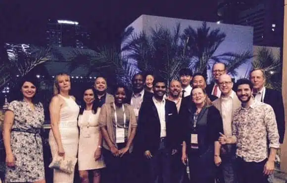 During the AudiologyNOW! 2016 Convention held in Phoenix, Ariz, April 13-16, members and friends of the American Academy of Audiology (AAA) International Subcommittee gathered for the International Reception on the Oculus Veranda at the Sheraton Grand Phoenix Hotel. Under a starry night sky, reception attendees gathered together to meet and greet friends from all points on the globe as they sipped wine and tasted sweet treats from an ice cream bar, a chocolate fondue station, and an international pastry buffet of delectable desserts.