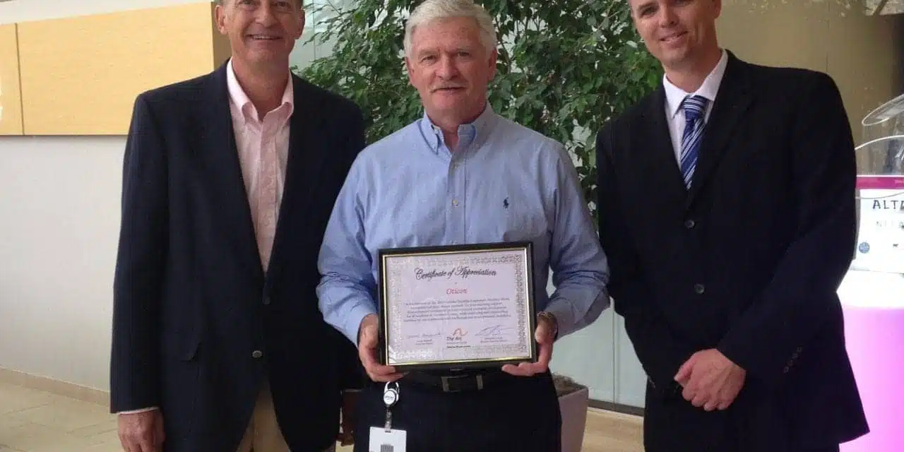 The Arc of Somerset Country recognized Somerset-based Oticon, Inc. for its support of employment for adults with developmental disabilities. (L-R) Britt Blomgren, Contract Sales Manager for The Arc; Thomas Falvey, VP of Operations, Oticon; and Gary Kummer, Director of Employment Services, The Arc.