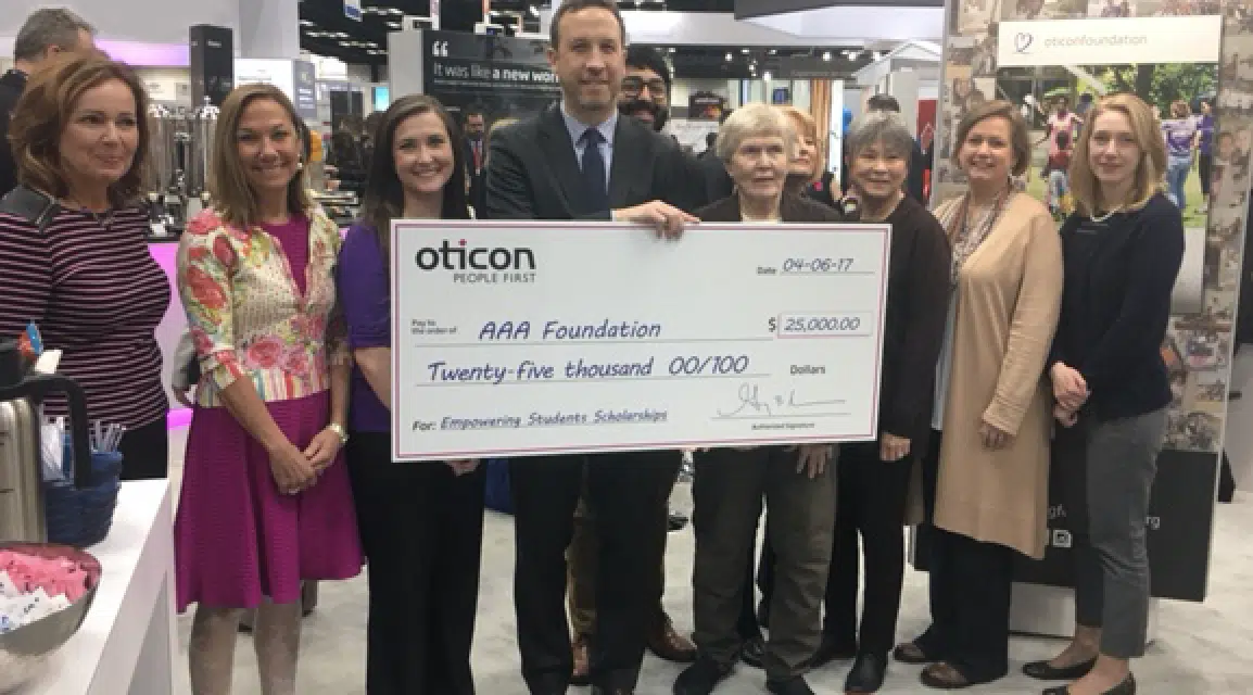 Oticon President Gary Rosenblum presented a $25,000 donation to the American Academy of Audiology Foundation’s (AAAF) Empowering Students scholarship fund to AAAF Board of Trustees Chair Therese Walden and AAAF Board Members.