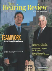 The September 2001 edition of Hearing Review features a story about how David Fabry, PhD, left, and Thomas McDonald, MD, led a team of 17 audiologists and 14 ENT physicians at the Mayo Clinic Rochester.