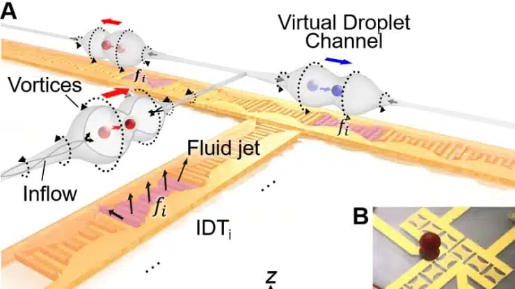 Original Paper: Zhang P, Chen C, Su X, et al. Acoustic streaming vortices enable contactless, digital control of droplets. Science Advances. 2020;6(24):eaba0606.
