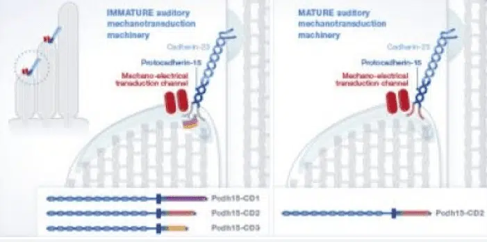 The researchers engineered mice that lack only the CD2 isoform of protocadherin-15 exclusively during adulthood. While the absence of this isoform led to profound deafness, the lack of the other protocadherin-15 isoforms in mice did not affect their hearing.