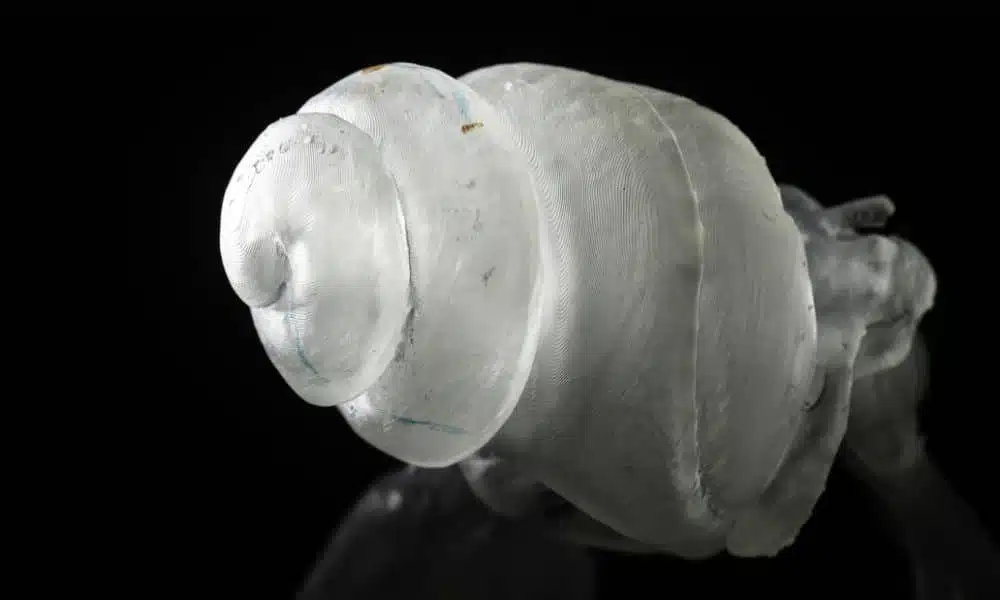 Close-up of a 3D-printed, scaled model of a gerbil cochlea. The cochlea of the inner ear is where incoming sound waves trigger minute vibrations of the hair cells. These vibrations are then converted into neurosignals that are delivered to the brain. (University of Rochester photo / J. Adam Fenster)
