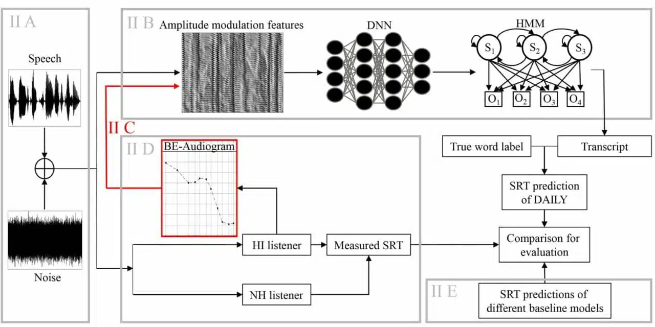 Original Paper: Roßbach J, Kollmeier B, Meyer BT. A model of speech recognition for hearing-impaired listeners based on deep learning. The Journal of the Acoustical Society of America. 2022;151(1417).
