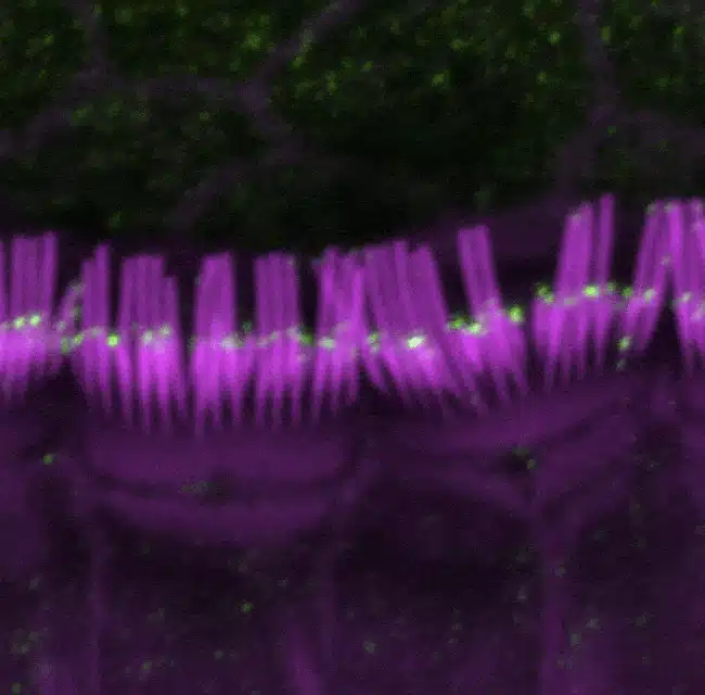 The study builds upon decades of research by NIDCD scientists and others to understand the formation and function of stereocilia. Stereocilia are like antennae, sensing sound waves passing through the ear and converting them to electrical signals that are transmitted to the brain. They are arranged in rows of increasing length on the hair cell surface, forming a staircase-like structure that is critical to their function.