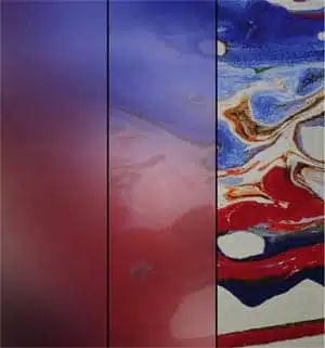 | Pictured are simulated views of an abstract painting to depict the development of pattern vision following early and extended blindness. Working with children who gained sight after several years of early onset blindness, Kalia et al found that they had poor spatial resolution and impoverished contrast perception immediately after cataract surgery. This is simulated in the left panel. Follow-up assessments 6 months later revealed surprising enhancement of contrast sensitivity. The middle panel depicts the substantial improvements in perceptual quality this corresponds to. The right panel shows the original painting. These findings suggest that the visual system retains considerable plasticity beyond the early years believed to be critical for normal development. The painting (acrylics on canvas) was created by a child who gained sight after extended blindness. (Image is courtesy of Luis Lesmes, Michael Dorr, Peter Bex, Amy Kalia, & Pawan Sinha) |