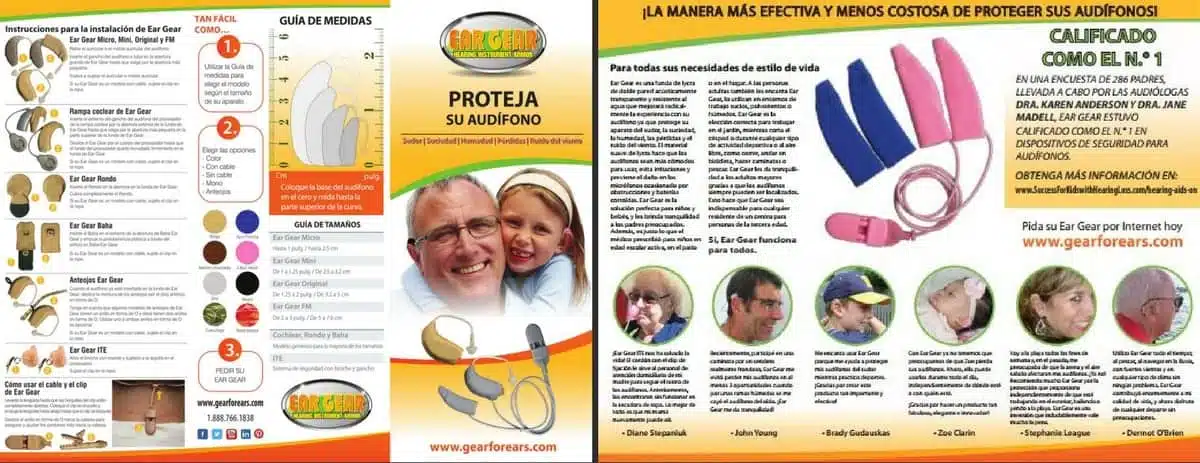 Ear Gear—a company that makes hearing aid safety devices—has redesigned their brochure plus added a Spanish version of the brochure to their full line of complimentary marketing materials, the company announced.