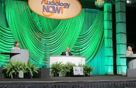 This was followed by a live podcast interview of Carlson and AAA President-elect Bettie B. Borton, AuD, by AudiologyTalk podcast host John A. Coverstone, AuD. Their discussion ranged from reimbursement, to continuing education, to outcome-based standards of practice. Borton emphasized the need for effective advocacy by the Academy and its members, legislative initiatives at state and regional levels, and contributions from members for these efforts. The podcast can be accessed at: audiologytalk.com