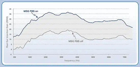 8) Subtract MSG with “FBS off” from the MSG with “FBS on” to determine the ASG. This is the additional gain provided by the FBS algorithm in the hearing aid (Figure 1).