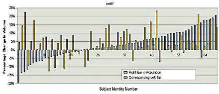 Only 15% of the population has both a symmetric magnitude and direction of volume change in their canals.