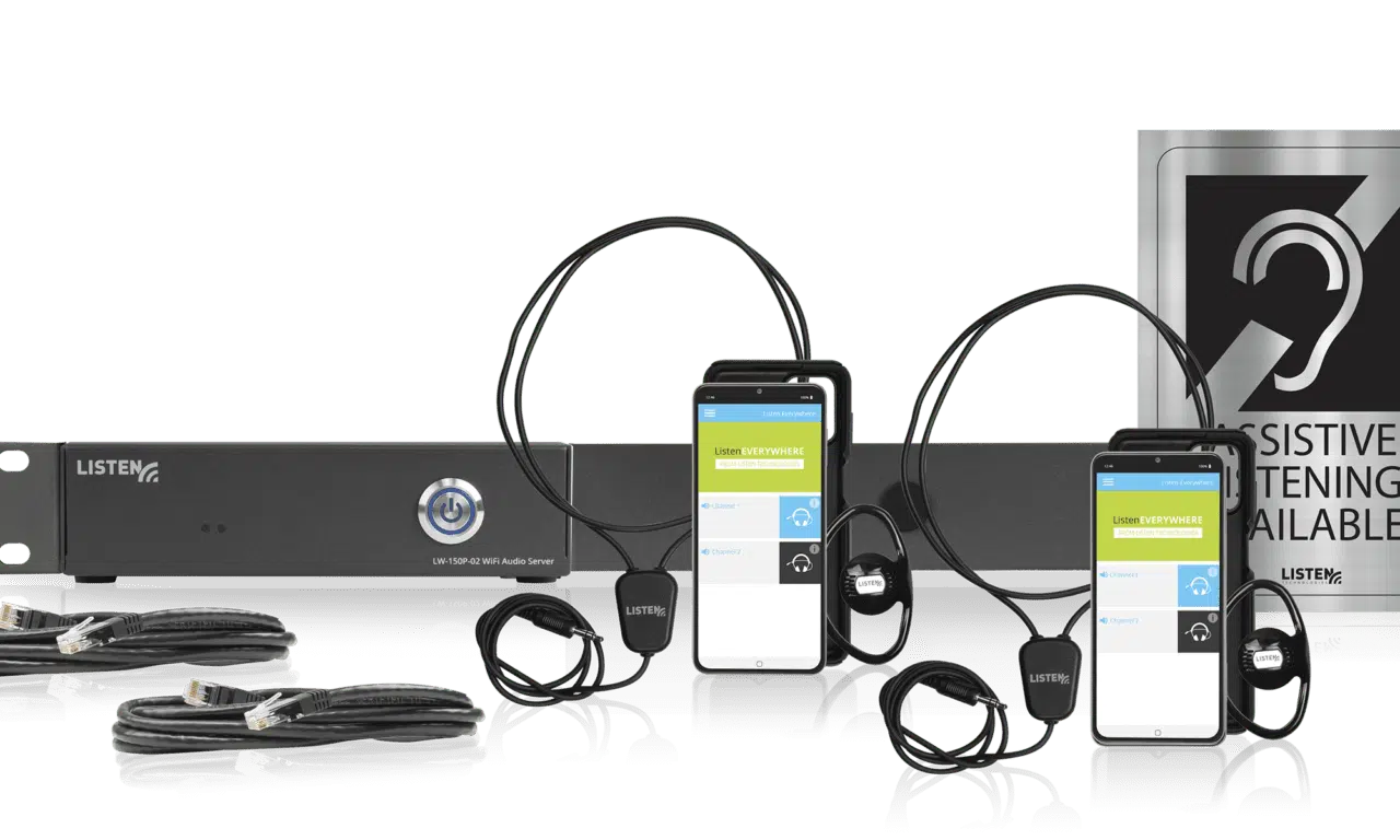 The LW-150P-02-D Listen EVERYWHERE two-channel server has a Dante input on the rear panel. This enables “easy routing and management of Listen EVERYWHERE audio on a network via Dante Controller.