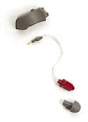 A very thin-gauge, external wire connects the processor with the hearing aid receiver, or speaker as it is more appropriately referred to. The wire, with a patent-pending, locking connector system at one end and the speaker at the opposite end, is available in three sizes (long, short, and medium) and is called the Speaker Link. The proper-sized Speaker Link will enable the processor to rest comfortably above the ear with the directional microphones on a flat plane and with the speaker located in the bony portion of the ear canal, past the second bend.