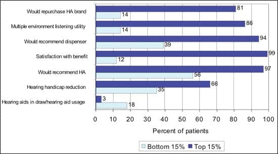 | FIGURE 6B. Impact of a weighted protocol comparing the top and bottom 15% of patients on hearing aid success. |